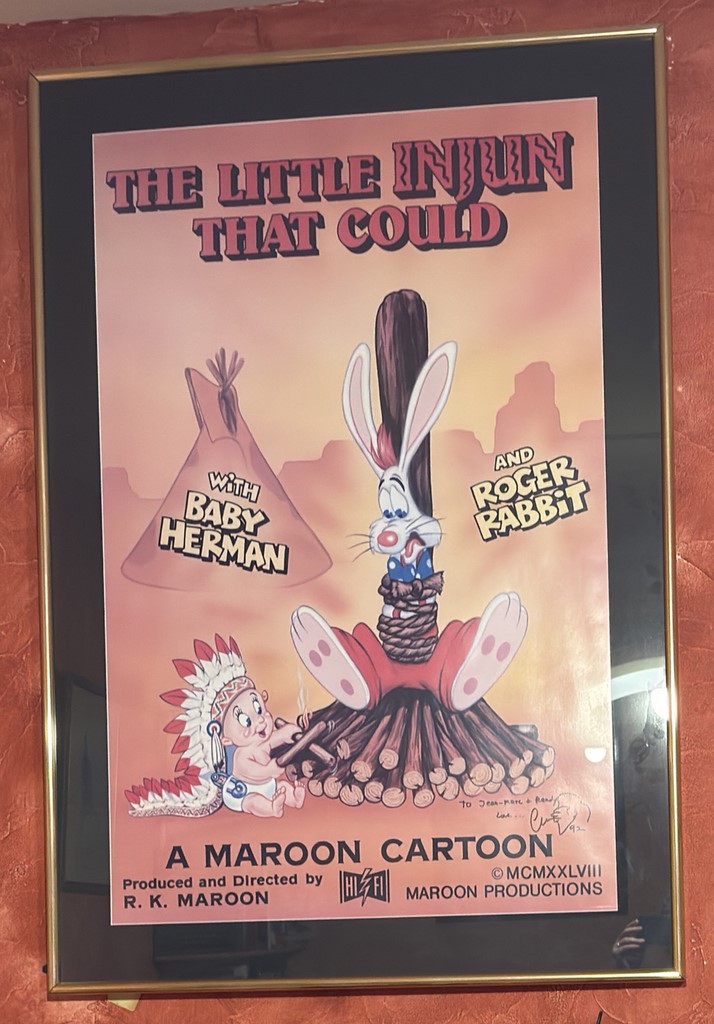 ROGER RABBIT - Agrandissement photo d'une affiche utilisée dans le film signée par Charles Fleischer (voix de Roger Rabbit) - 1988.